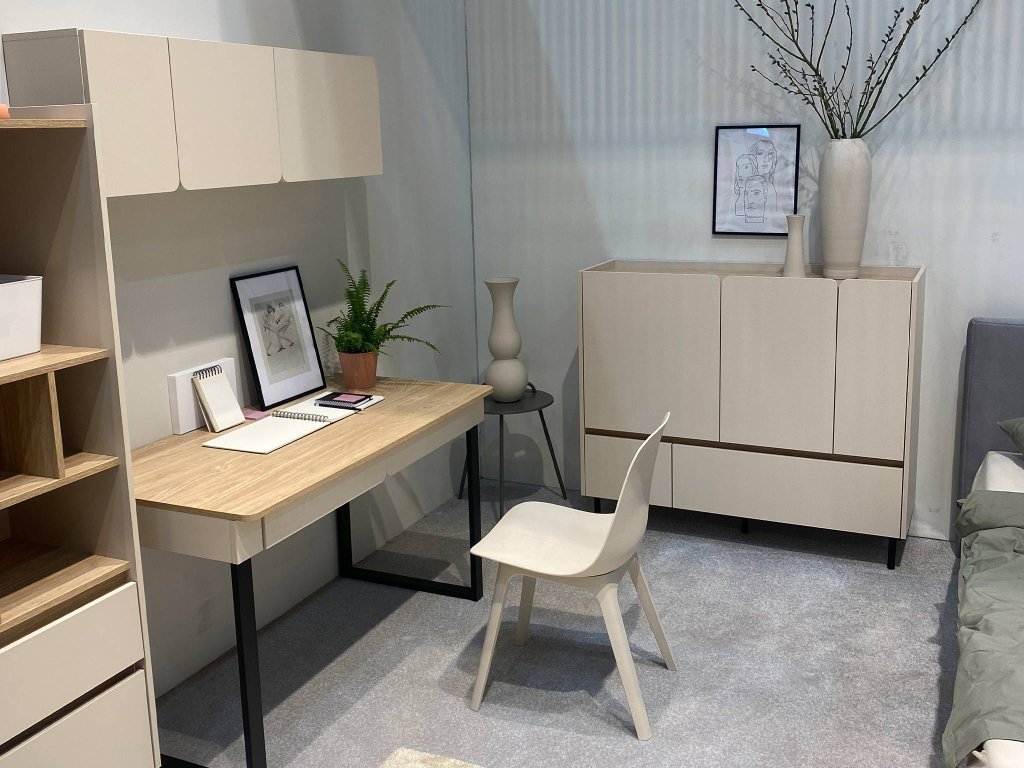 Detský nábytok LUCA určený do študentskej detskej izby v peknej béžovej farbe. Jemný odtieň béžovej a detaily v odtieni olejovaný dub vytvárajú nadčasovú farebnú kombináciu, ktorá bude skvelou voľbou do detských izieb, v ktorých je väčšinou kopa farebných hračiek, obliečok a plyšákov. Dvierka a zásuvky na nábytku z kolekcie LUCA majú bezúchytové otváranie. Písacie stoly a komody majú vysoké čierne kovové nohy.