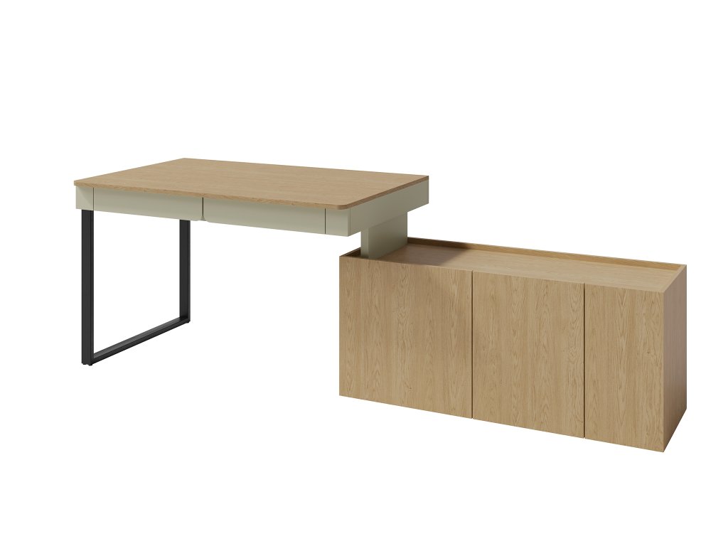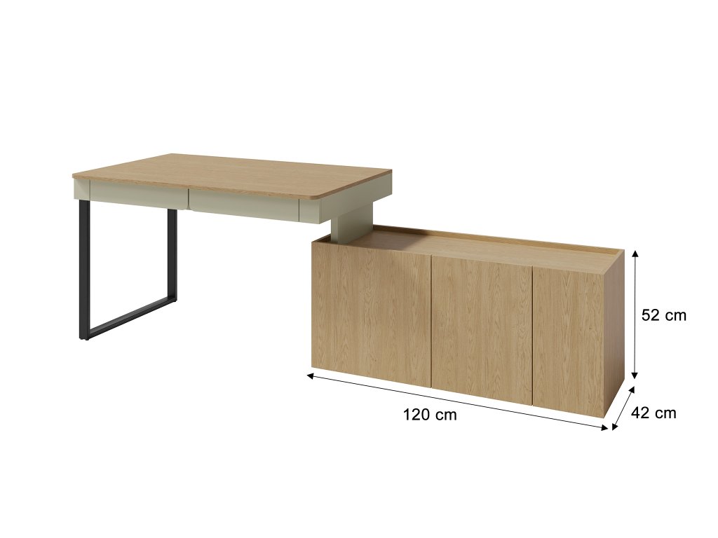 Písací stôl s komodou LUCA S10 je nielen štýlový, ale aj multifunkčný a variabilný, keďže sa dá zložiť štyrmi rôznymi spôsobmi. Navyše okrem klasickej pracovnej dosky a zásuviek máte po ruke hneď aj komodu na školské potreby. Stôl do detskej izby má dve zelené zásuvky a veľkú pracovnú plochu v odtieni dub baltic. Nízka komoda, ktorá prislúcha k stolu je trojdverová. Písací stôl môžete pekne prispôsobiť priestoru v detskej izbe. Môže z neho byť rohový písací stôl otočený na pravú alebo ľavú stranu. Avšak viete si ho zmontovať aj pozdĺžne a vybrať si, či chcete mať komodu na pravej alebo ľavej strane. Montážne dierky sú predpripravené, záleží len na vás, ktoré sa pri montáži rozhodnete použiť.