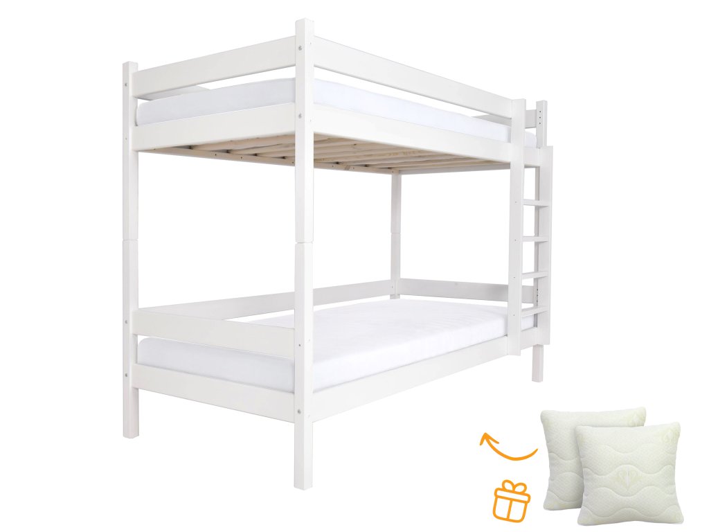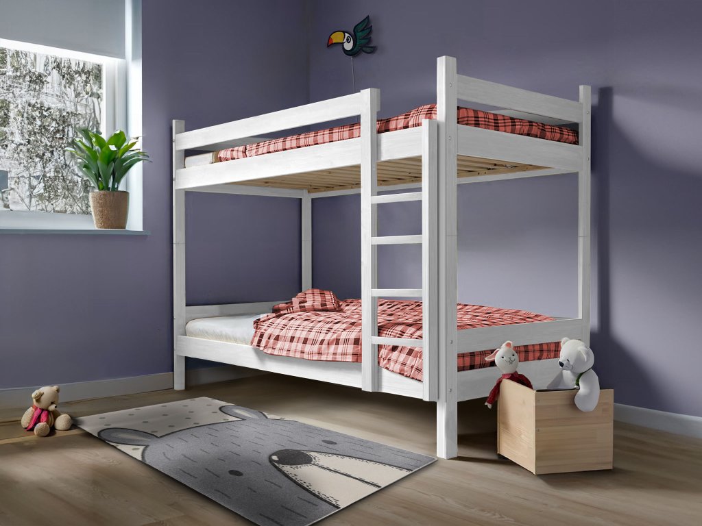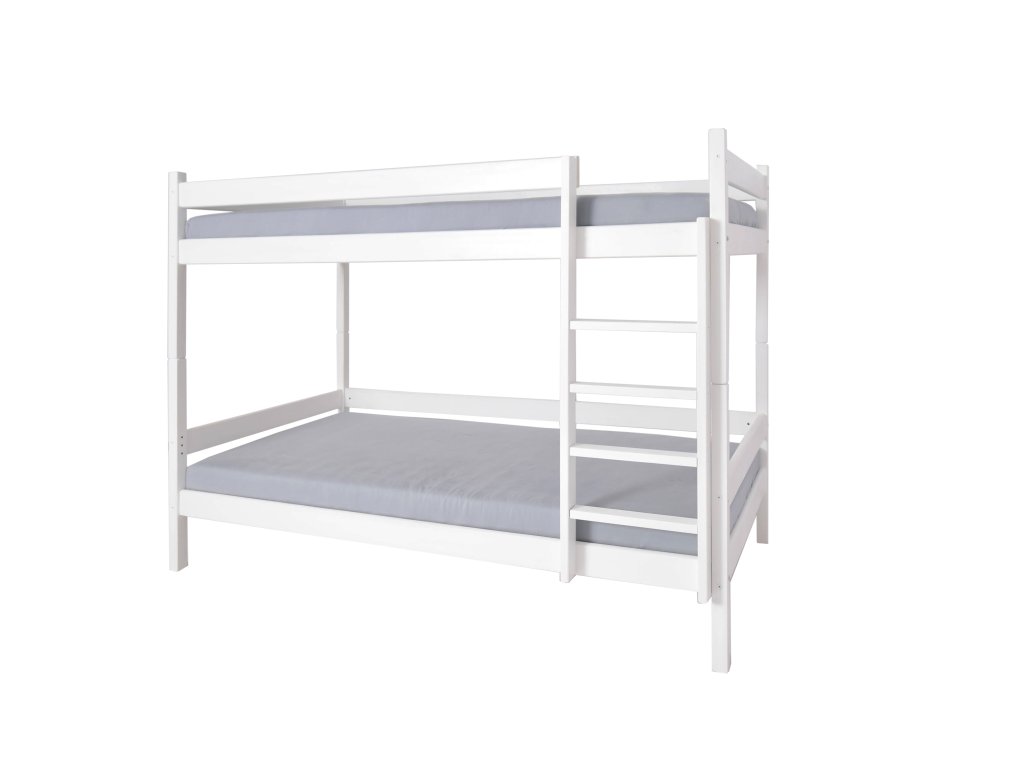 Kvalitná poschodová posteľ pre dospelých i deti z masívu prírodnej borovice. Posteľ je možné rozložiť na dve samostatné lôžka. Spoj postelí je riešený kolíkmi, vďaka čomu môžete posteľ veľmi rýchlo a jednoducho zložiť alebo rozložiť. Rebrík je obojstranný, a preto je posteľ univerzálna, a je možné ju postaviť ako ľavú alebo pravú. Posteľ je vhodnou voľbou pre každého, kto si potrpí na kvalitu, pretože je vyrobená z masívneho borovicového dreva, a preto Vám bude slúžiť dlhé roky.