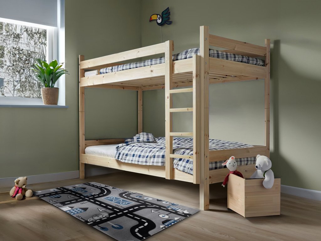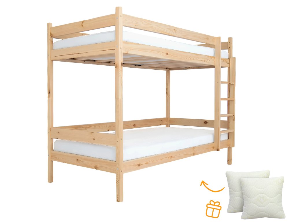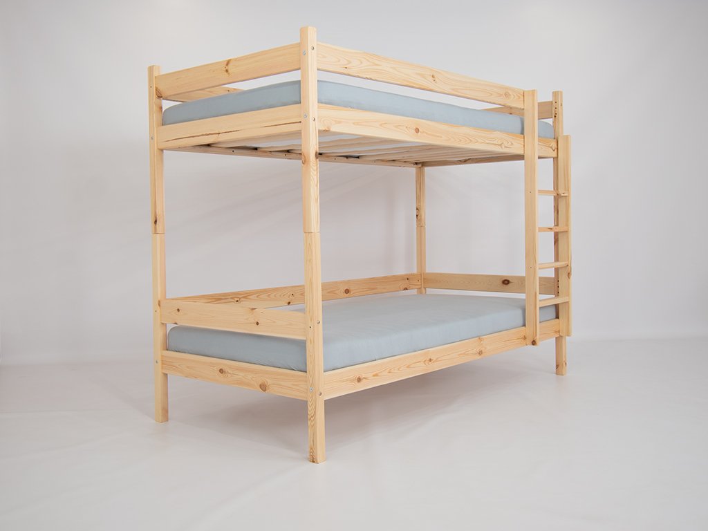 Kvalitná poschodová posteľ pre dospelých i deti z masívu prírodnej borovice.Posteľ je možné rozložiť na dve samostatné lôžka. Spoj postelí je riešený kolíkmi, vďaka čomu môžete posteľ veľmi rýchlo a jednoducho zložiť alebo rozložiť. Rebrík je obojstranný, a preto je posteľ univerzálna, a je možné ju postaviť ako ľavú alebo pravú. Posteľ je vhodnou voľbou pre každého, kto si potrpí na kvalitu, pretože je vyrobená z masívneho borovicového dreva, a preto Vám bude slúžiť dlhé roky.