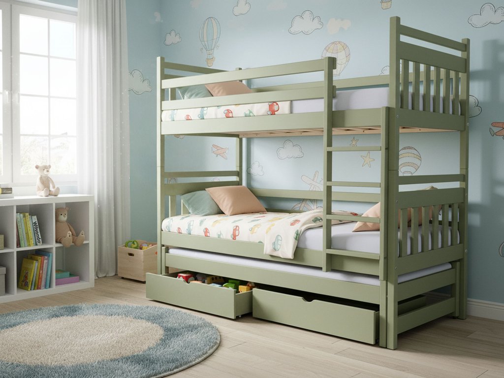 Poschodová posteľ s prístelkou Petra 5 90x200 - olivová