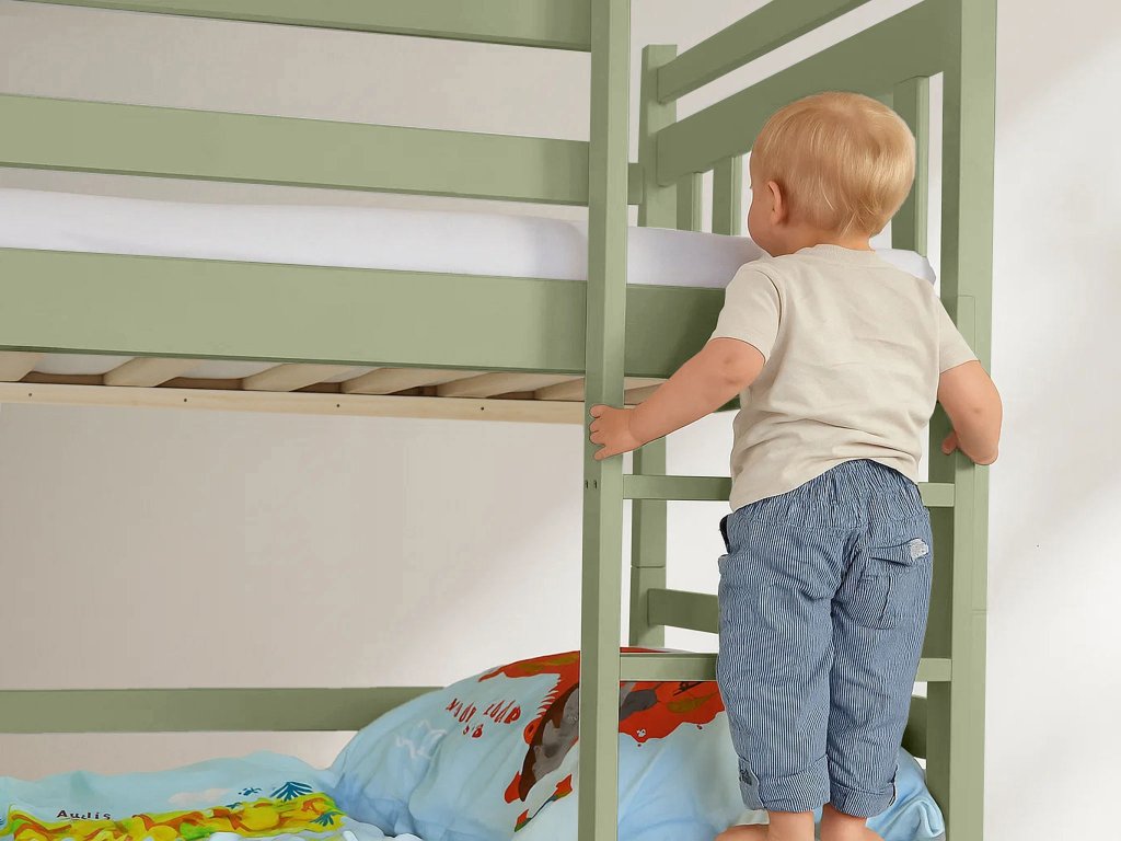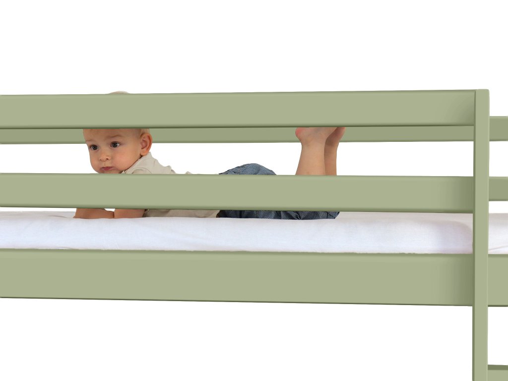 Na spodnom lôžku je bariérka, ktorá je súčasťou postele a chráni dieťatko pred vypadnutím z postele.