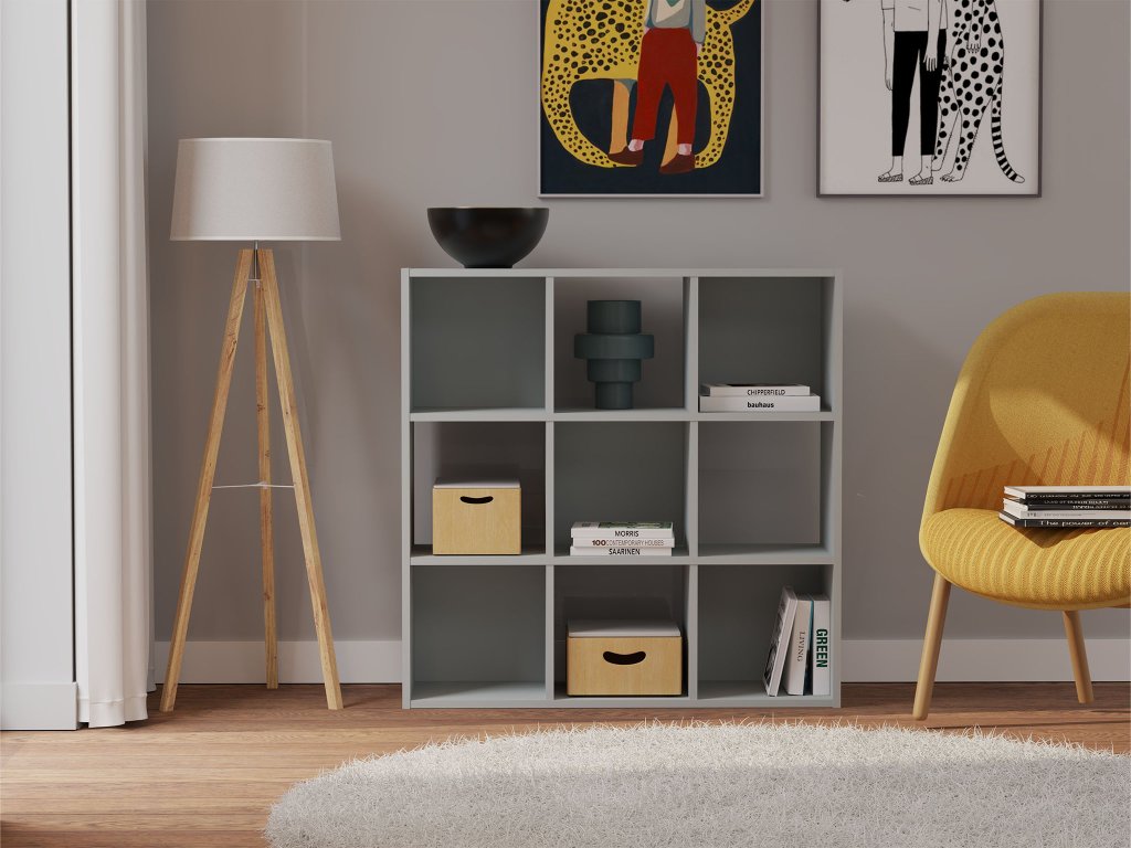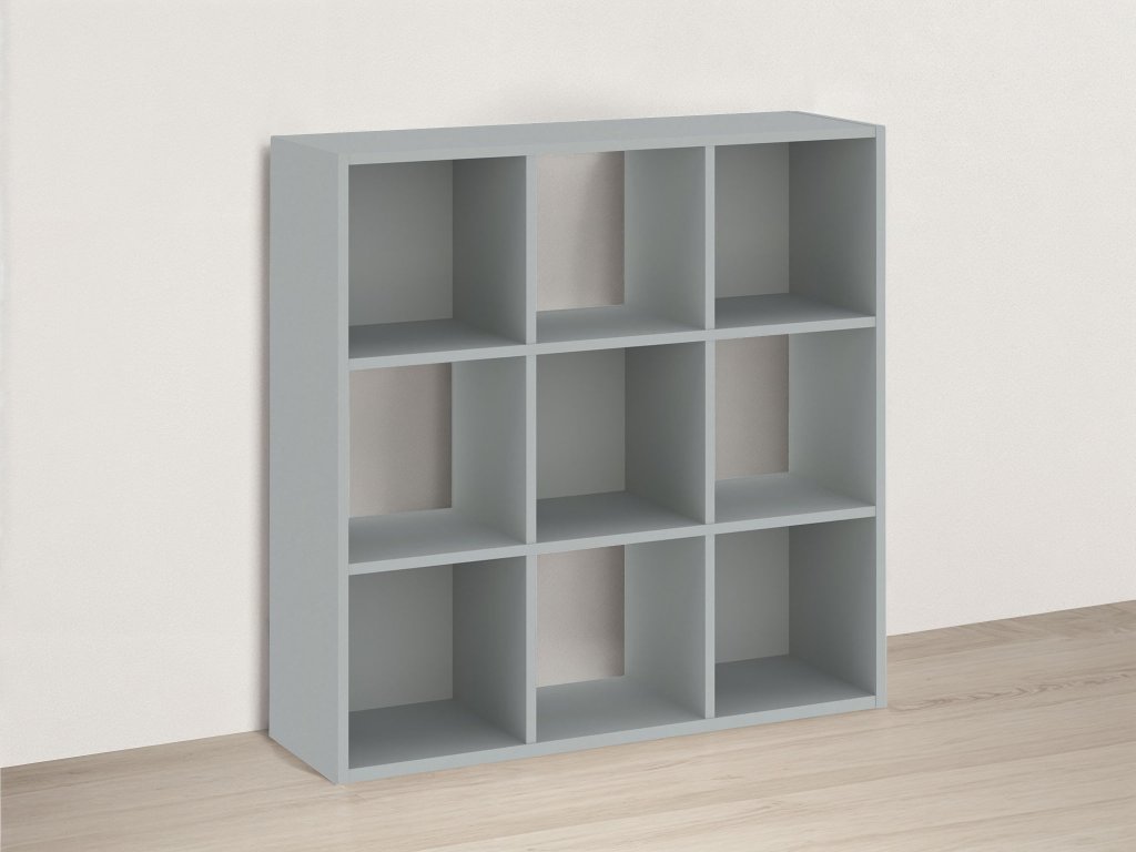 Dodajte svojmu interiéru štýlový nádych s regálom Catchy 9P v elegantnej sivej farbe, ktorý spája moderný dizajn s praktickým využitím. Vyrobený z odolnej 16 mm laminovanej dosky, zabezpečuje stabilitu a dlhú životnosť. Deväť otvorených políc v usporiadaní 3x3 ponúka dostatok miesta na knihy, dekorácie či dokumenty, zatiaľ čo zadná stena so šachovnicovým vzorom dodáva regálu dynamický a atraktívny vzhľad. Ideálny doplnok do obývačky, detskej izby alebo spálne, ktorý vám pomôže udržať priestor organizovaný a štýlový.