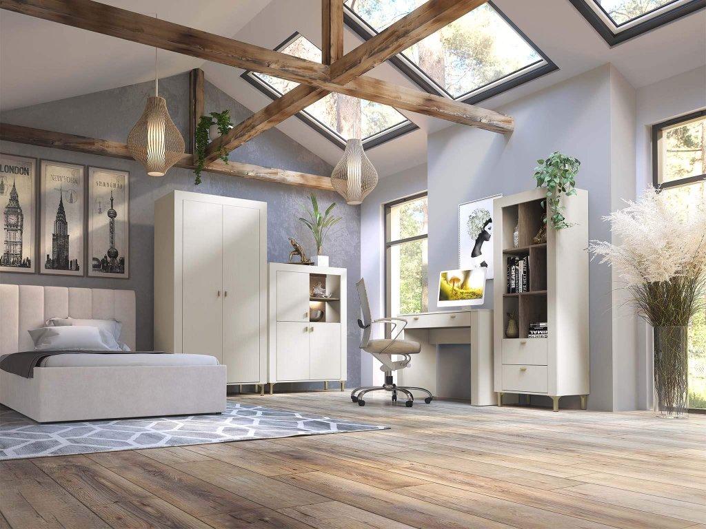Pridajte do svojho domova dotyk sofistikovanosti s regálom Mossa. Tento regál sa stane výrazným prvkom vášho moderného interiéru. Už na prvý pohľad vás osloví svojou luxusnou béžovou farbou, ktorá evokuje jemnosť kašmíru. Interiér regálu je navrhnutý v príjemnom odtieni dubu whisky, ktorý vnáša do vášho domova nádych prírody. Kombinácia béžového exteriéru a dubového interiéru vytvára moderný a harmonický vzhľad, ktorý okamžite zaujme.