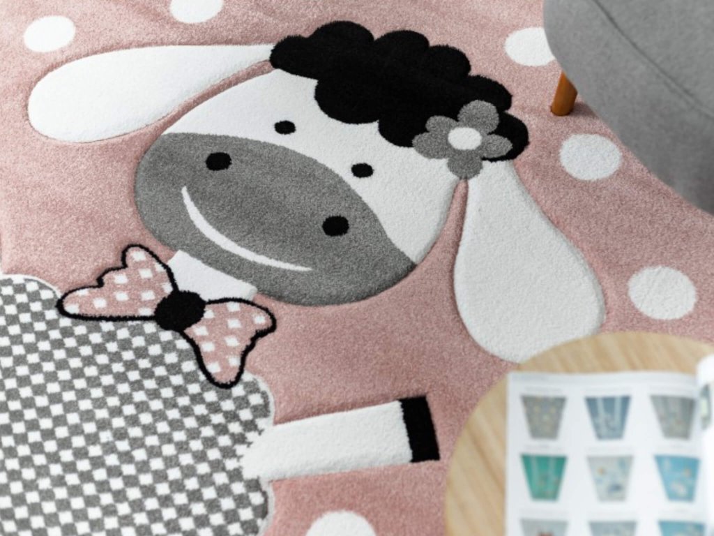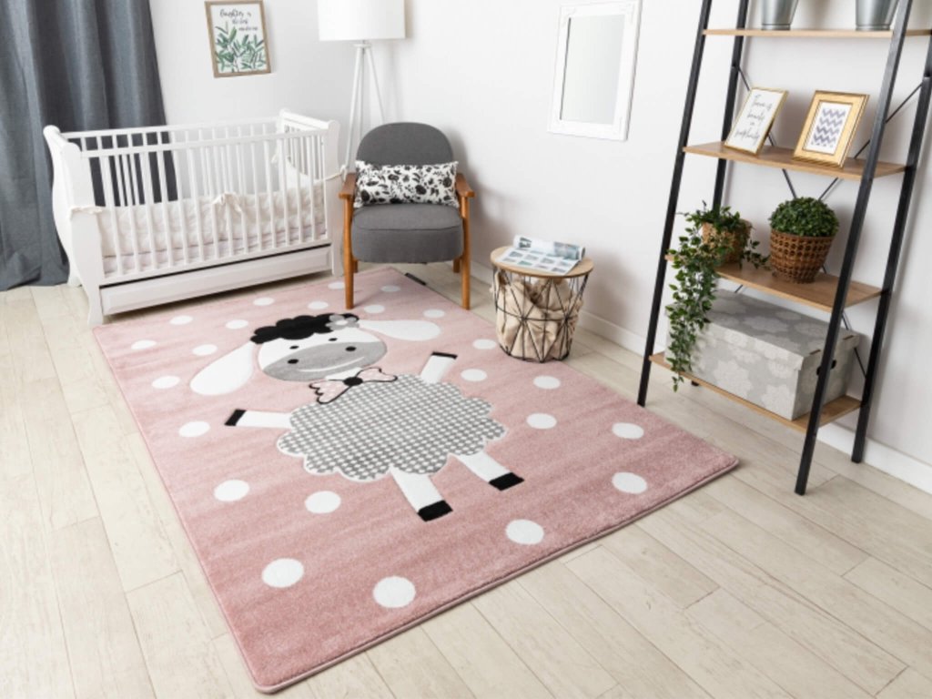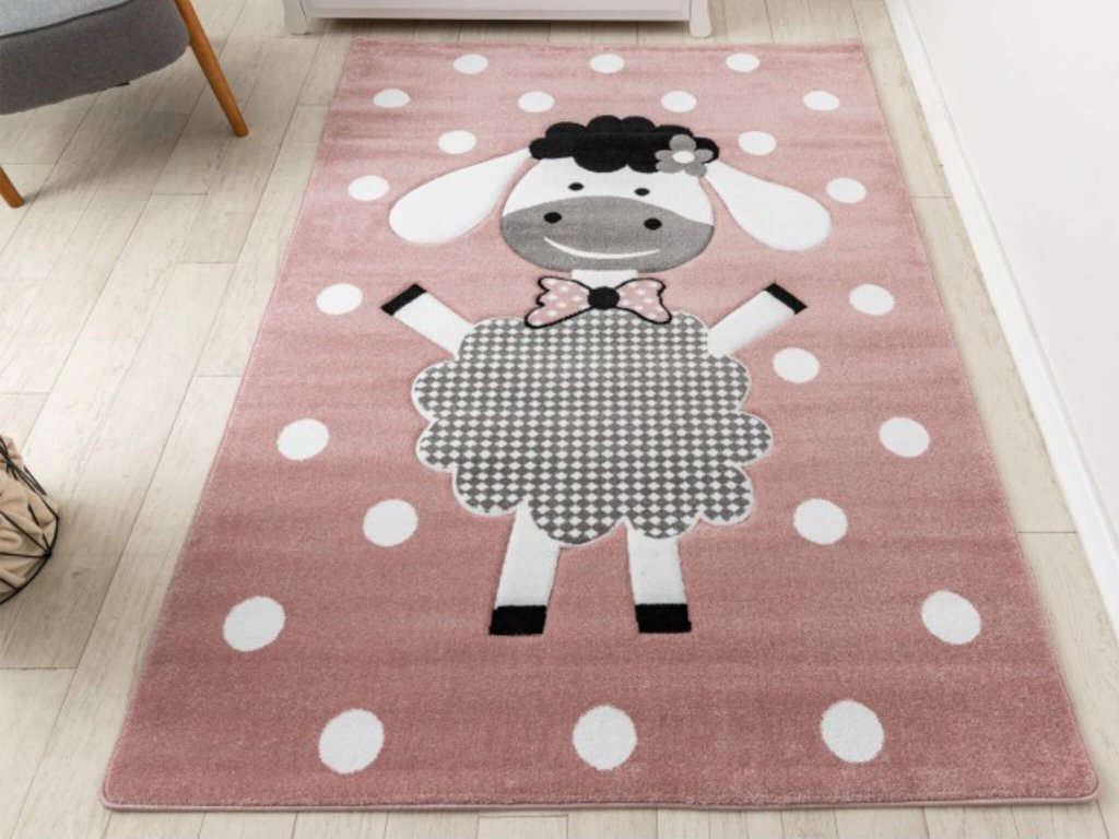 Ružový bodkovaný koberec Veselá ovca