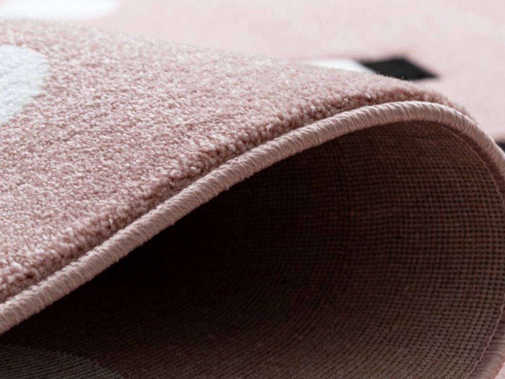 Detský koberec Veselá ovca svojím dizajnom rozžiari nielen detské očká, ale aj priestor samotnej izby. Ružová farba spolu s bielymi bodkami je príjemná kombinácia pre vašu dcérku. Hustota vlákien je 2500g/m2 typu Frieze a výška vlasu koberca je 13 mm. Vlákno, z ktorého je koberec vyrobený je polypropylénové (PP) a má vynikajúcu mäkkosť a pružnosť vďaka svojmu tepelnému spracovaniu. Nedeformuje sa a vyznačuje sa odolnosťou proti oderu. Čo určite oceníte je jednoduchá údržba a stredne dlhý vlas. Je k dispozícii vo viacerých rozmeroch.