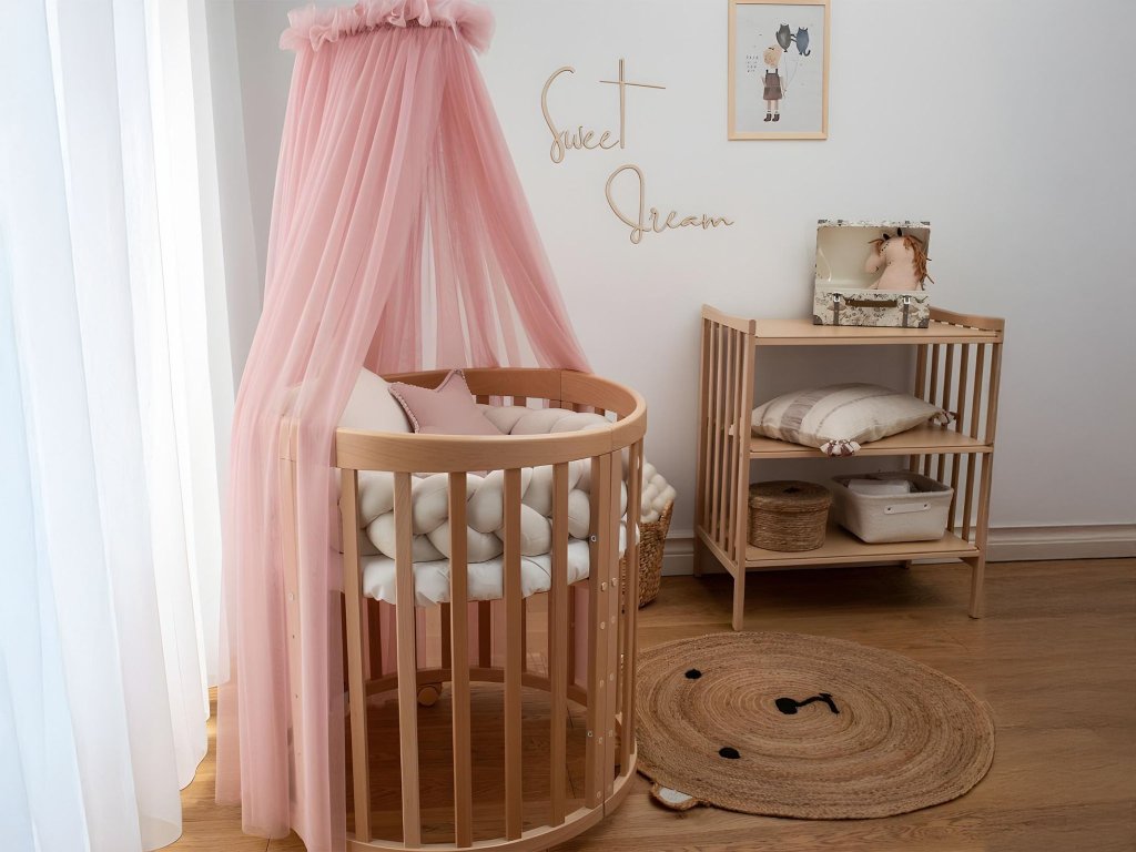 Prírodná rastúca postieľka 7v1 s elegantným tylovým baldachýnom v odtieni Rose, ktorá poskytuje kompletné riešenie pre vaše dieťa. Sada obsahuje praktické kolieska, trojdielny matrac, krásny baldachýn a kovový stojan na jeho upevnenie. Skvelá ponuka, ktorá spája funkčnosť a štýl za výhodnú cenu!