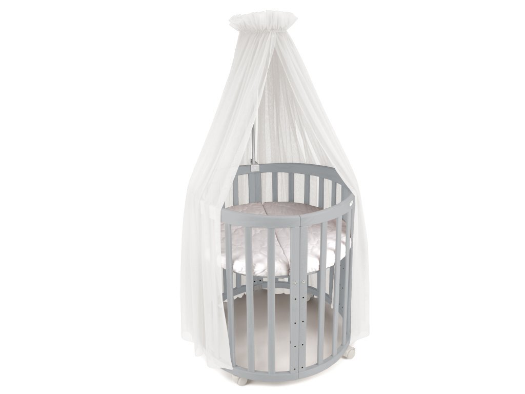 Sada sivej rastúcej postieľky 7v1 s tylovým baldachýnom Ecru