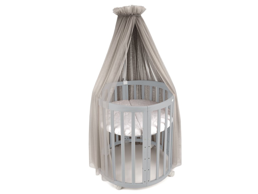 Sada sivej rastúcej postieľky 7v1 s tylovým baldachýnom Taupe