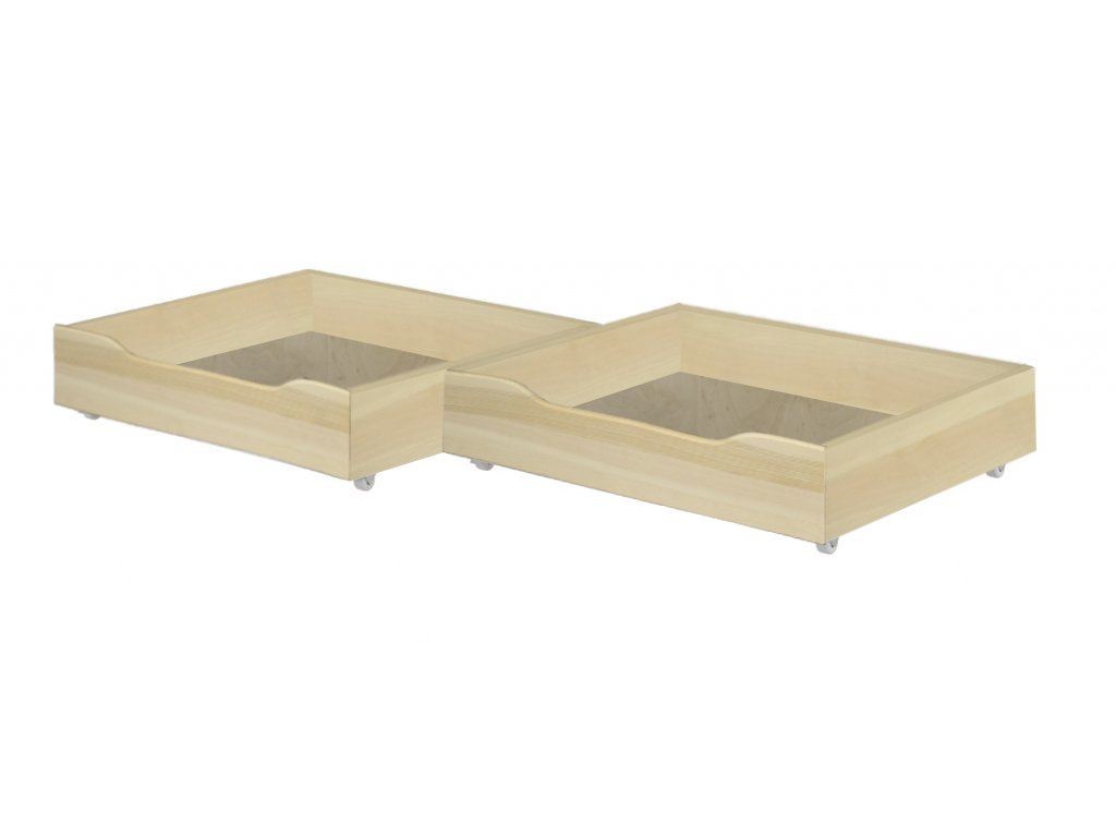 Praktické a priestranné úložné boxy k posteli LIPA v prírodnom borovicovom prevedení, do ktorých môžete umiestniť postieľnú bielizeň alebo iné potrebné príslušenstvo. Zásuvky majú gumené kolieska, a tak chránia Vašu podalhu pred poškodením. V cene sú zahrnuté dva úložné boxy.