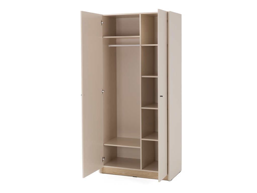 Objavte štýl a praktickosť so šatníkovou skriňou ALESSIO AE3. Navrhnutá pre všetky vaše potreby organizácie oblečenia. Táto skriňa dodá vašej spálni nielen úložný priestor ale aj moderný vzhľad. Skladá sa z dvoch častí: ľavá sekcia ponúka vešiakovú tyč na zavesenie oblečenia a dve priestranné police, zatiaľ čo pravá časť je vybavená štyrmi rovnomerne rozloženými policami, ideálnymi na uloženie oblečenia, obuvi alebo iných doplnkov. Vďaka svojmu farebnému prevedeniu sa táto skriňa ľahko začlení do akéhokoľvek interiéru, pričom jemný odtieň béžovej prináša do miestnosti útulnosť a harmóniu.