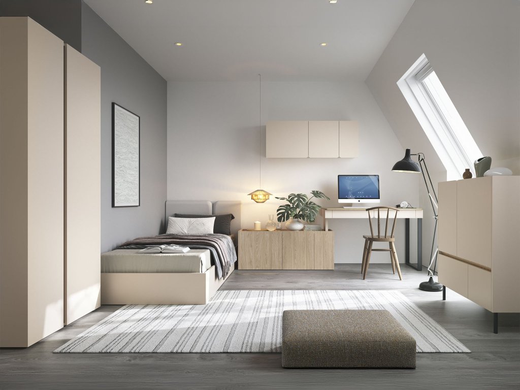 Detský nábytok LUCA určený do študentskej detskej izby v peknej béžovej farbe. Jemný odtieň béžovej a detaily v odtieni olejovaný dub vytvárajú nadčasovú farebnú kombináciu, ktorá bude skvelou voľbou do detských izieb, v ktorých je väčšinou kopa farebných hračiek, obliečok a plyšákov. Dvierka a zásuvky na nábytku z kolekcie LUCA majú bezúchytové otváranie. Písacie stoly a komody majú vysoké čierne kovové nohy.