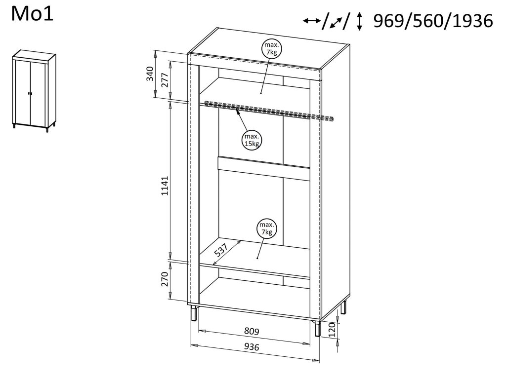 Klasická šatníková skriňa Mossa je ideálnou voľbou pre moderné domácnosti, kde sa kladie dôraz na spojenie estetiky a funkčnosti. Tento štýlový kus nábytku, v elegantnom béžovom odtieni evokujúcom kašmír, prinesie do vašej miestnosti nádych luxusu. Interiér skrine v dekore dubu whisky vytvára krásny kontrast a dodáva celému dizajnu príjemný prírodný akcent. Vrúbkovaný povrch pridáva skrini jedinečný vizuálny prvok, ktorý okamžite upúta pozornosť. Táto dvojdverová skriňa so štandardným otváraním poskytuje dostatok úložného priestoru pre vaše oblečenie a doplnky. Vnútorné usporiadanie zahŕňa dve pevné police – hornú a dolnú, každá s nosnosťou 7 kg, čo zaručuje praktickosť pri uskladnení rôznych predmetov. Navyše, skriňa je vybavená vešiakovou tyčou s nosnosťou 15 kg, ktorá je ideálna na zavesenie kabátov, šiat a ďalších dlhých odevov. Stabilitu skrine zaisťujú štyri robustné nožičky, ktoré taktiež uľahčujú čistenie podlahy pod ňou. Skriňa Mossa dokonale kombinuje praktické využitie s elegantným dizajnom, čo z nej robí neoddeliteľnú súčasť každej modernej spálne alebo predsiene.