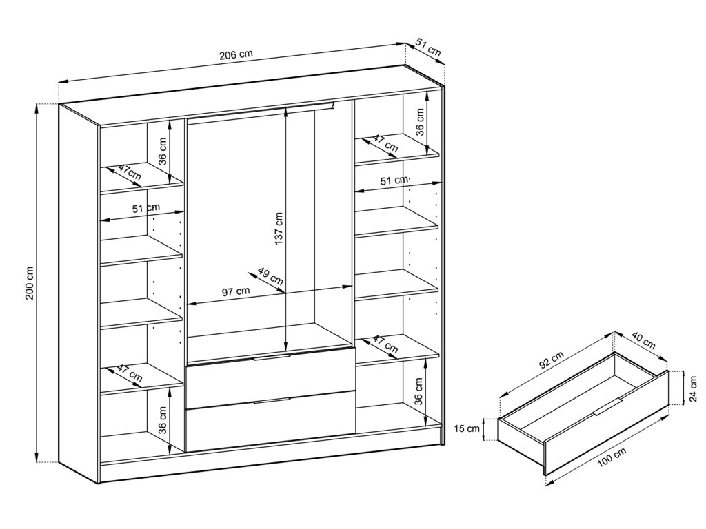 | Presná šírka skrine: | 206 cm |