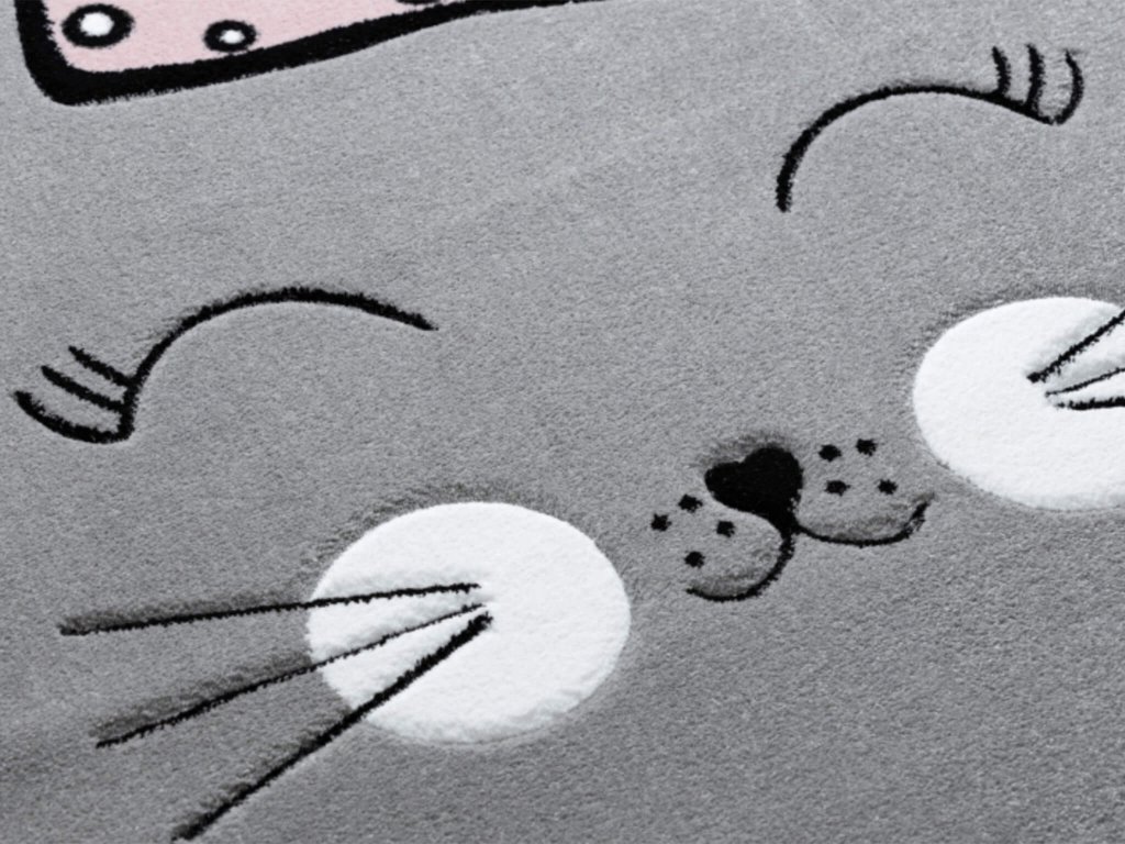 Hrejivý a pohodlný koberec pre detskú izbu, ktorý doplní prázdny priestor a vytvorí ideálne miesto pre hranie. Sivý koberec Happy Cat s motívom šťastnej mačky je špeciálne navrhnutý pre dievčatá. Tento koberec typu Frieze má hustotu štetiny 2500 g/m2 a vlasovú výšku 13 mm. Je vyrobený z 100 % polypropylénu (PP), ktorý vyniká svojou mäkkosťou a pružnosťou získanou vďaka tepelnému spracovaniu. Koberec si udržuje svoj tvar a odoláva opotrebeniu. Jeho jednoduchá údržba a stredná dĺžka vlasov ho robia ideálnou voľbou. Dostupný je v rôznych rozmeroch, aby vyhovoval všetkým vašim potrebám.