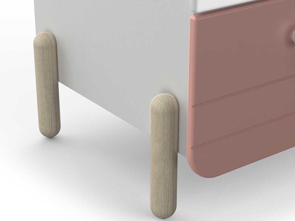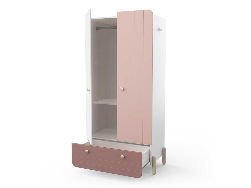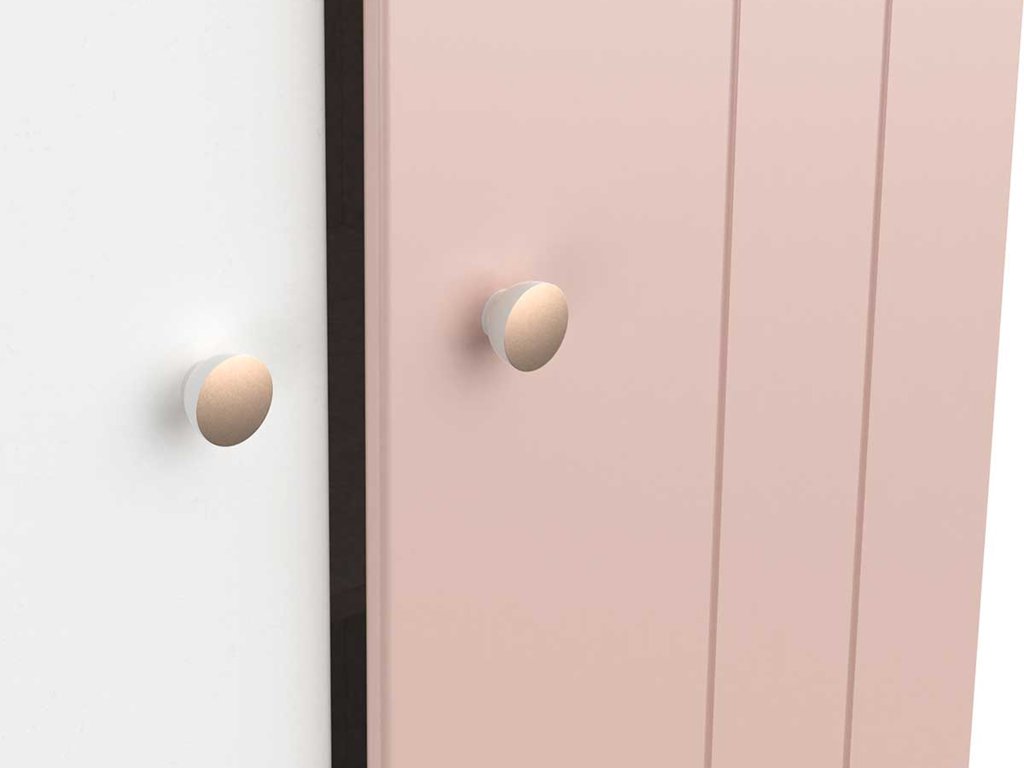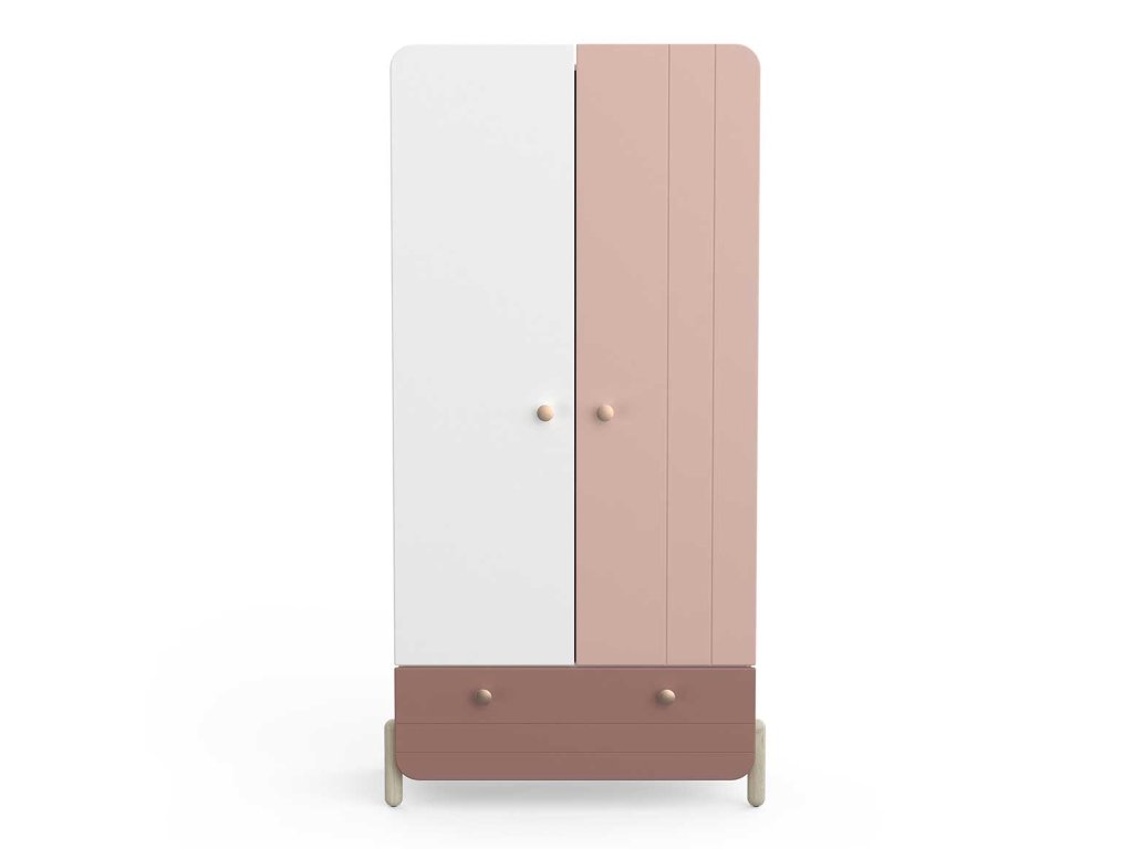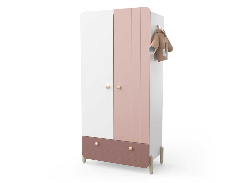 Šatníková skriňa Jade je skvelým riešením do dievčenských izieb, kde sa kladie dôraz na jemný dizajn, bezpečnosť a praktickosť. Spojenie bielej a tlmenej ružovej farby spolu s dubovými drevenými nožičkami vytvára moderný a zároveň pokojný vzhľad. Zaoblené tvary skrine znižujú riziko poranenia a zvyšujú bezpečnosť v detskom prostredí.