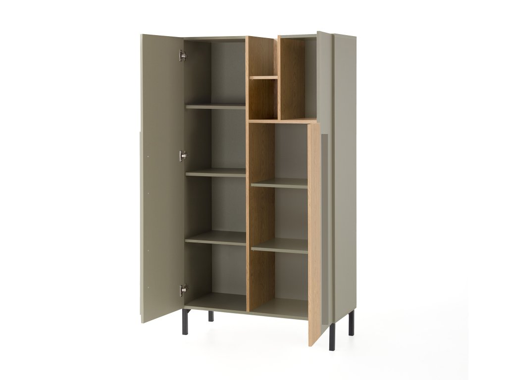 Skrinka do detskej izby SERGIO S5 ponúka priestor na odkladanie hračiek, školských potrieb či oblečenia, ktoré si naukladáte do priestranných políc. Kombinácia zelenej farby a detailov v odtieni dub baltic sa hodí do dievčenských aj chlapčenských detských izieb. Zaujímavým detailom sú aj podlhovasté úchytky na otváranie dvierok, na ktoré pekne dočiahnu aj menšie deti. Dvojdverová skrinka je vyrobená z kvalitnej nábytkárskej laminovanej drevotriesky. Čierne nožičky vysoké 15 cm sú z kovu. Pre viac úložného priestoru si vyberte ešte jednu šatníkovú skriňu s priestorom na vešanie oblečenia.