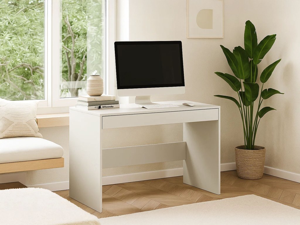 - Písací stôl Lens 1S – vyrobený z kvalitných materiálov, disponuje jednou priestrannou zásuvkou a stojí na stabilných plastových nožičkách.