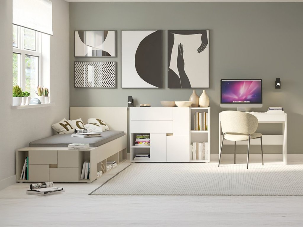Kolekcia Lens prináša kompletné zariadenie študentskej izby, ktoré spája praktické využitie s moderným dizajnom. Vďaka svojej elegantnej kašmírovej farbe pôsobí neutrálne a nadčasovo, takže ju ľahko doladíte k doplnkom podľa preferencií vášho tínedžera. Séria Lens zahŕňa všetko potrebné pre každodenný študentský život: