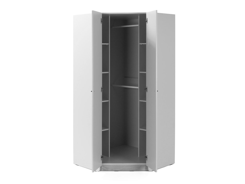 - Rohová šatníková skriňa ALESSIO AE2: Efektívne využite roh miestnosti na uloženie oblečenia a osobných vecí. Rozmery rohovej šatníkovej skrine: 95 x 195 x 95 cm.