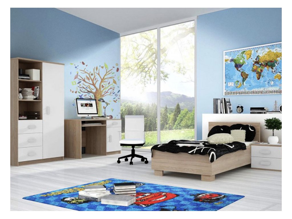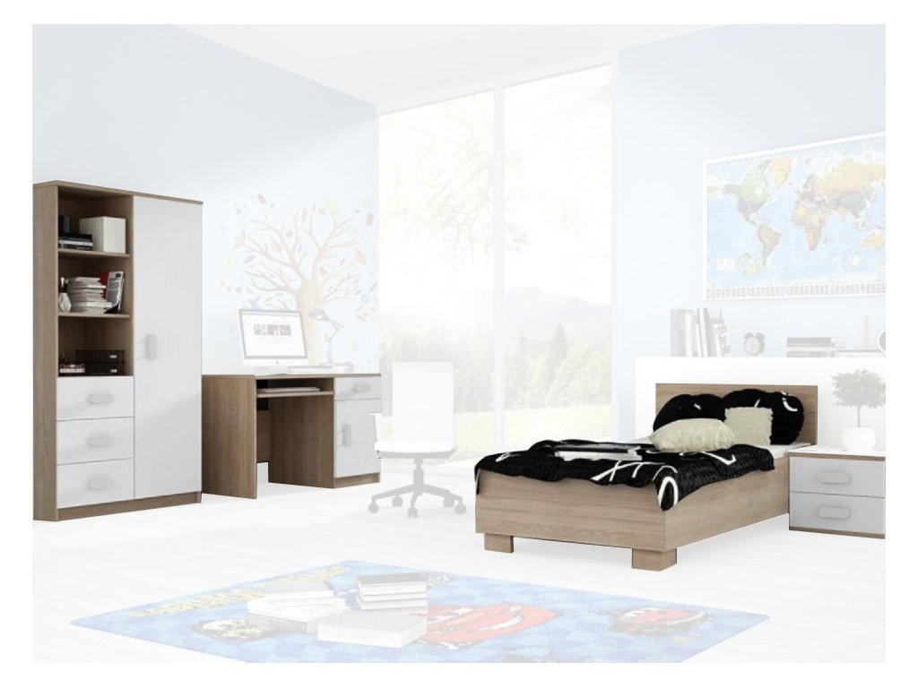 Detská izba sa skladá z: písacieho stola, regálu, detskej postele 90x200 cm a nočného stolíka.