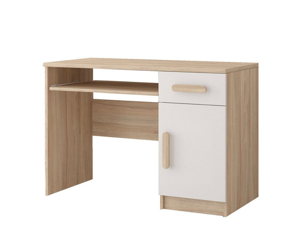 - Písací stôl je vybavený jednodverovou skrinkou, zásuvkou a výsuvnou doskou pre klávesnicu počítača. Rozmer (šxvxh): 110 x 76 x 50 cm.