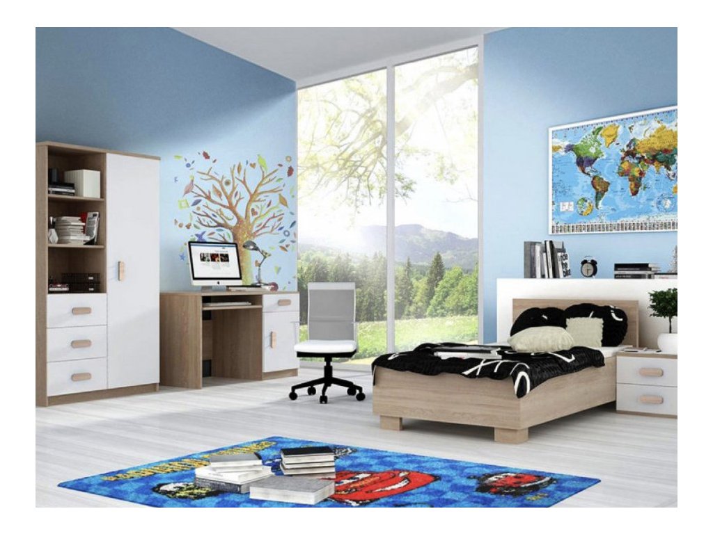Detská izba sa skladá z: písacieho stola, regálu, detskej postele 90x200 cm a nočného stolíka.