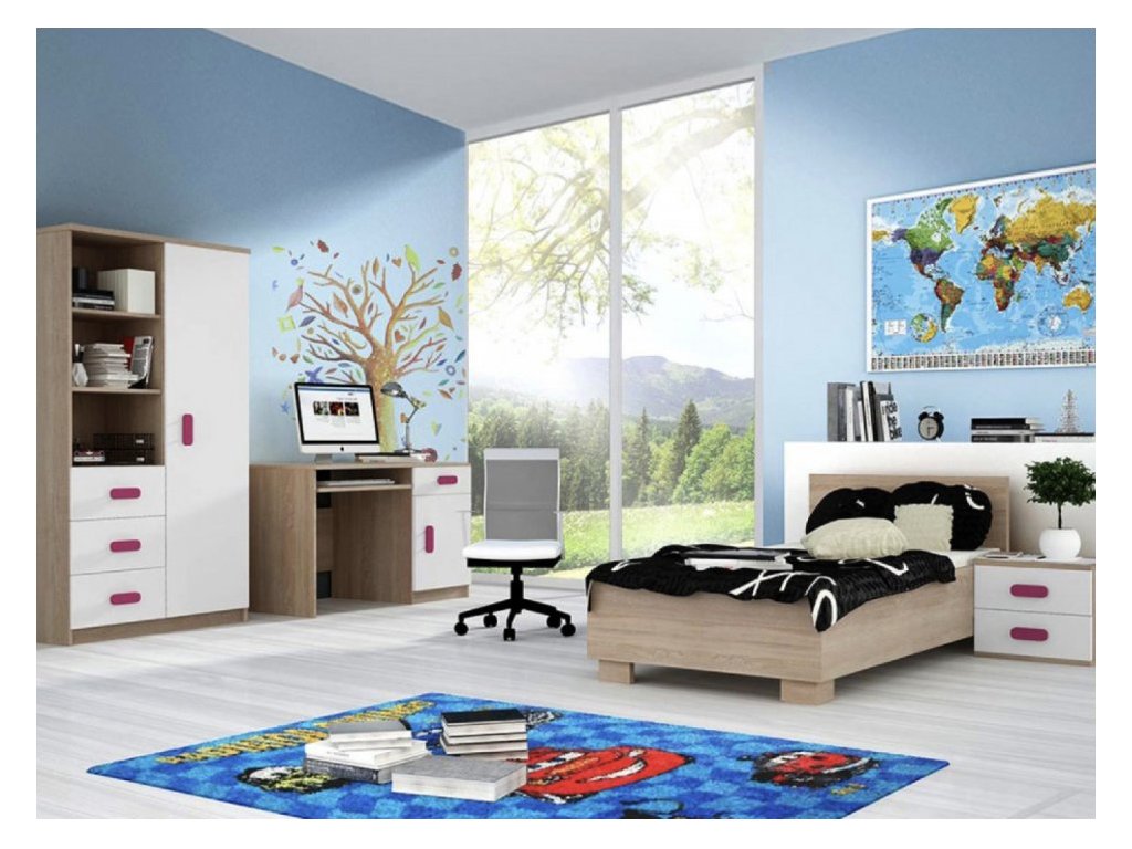 - Detská izba sa skladá z: písacieho stola, regálu, detskej postele 90x200 cm a nočného stolíka.