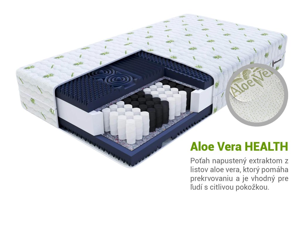 Poťah matraca je vyrobený zo špeciálneho vlákna s výťažkom z Aloe vera, ktoré má antibakteriálne a antialergické účinky. Dá sa prať pri teplote 30°C, je vybavený praktickým zipsom a štyrmi úchytmi na jednoduchú manipuláciu. Vďaka 3D vetracej páske je zabezpečená optimálna cirkulácia vzduchu v matraci.