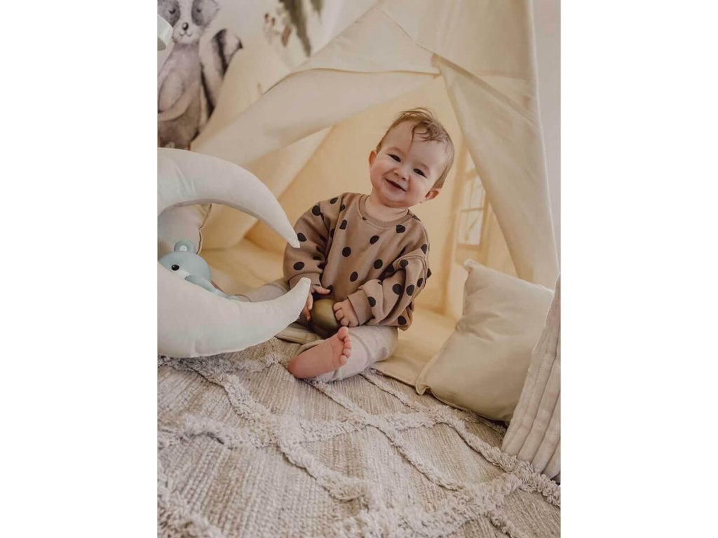 Vstúpte do krajiny, miesta, kde vládne dobrá nálada, zábava, bezstarostnosť a nekonečná detská fantázia. Teepee stan je vhodný pre malých prieskumníkov a milovníkov dobrodružstiev. Stan je skvelý na poobedný oddych, hranie či čítanie rozprávok. Je vhodný ako prenosný domček, kde drobec zažije veľa dobrodružstiev. Teepee stan je vyrobený z kvalitného materiálu v neutrálnej farbe, s hrubou podložkou a vankúšmi.