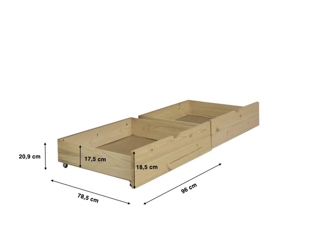 Priestranné úložné boxy sú vhodné pod domčekovú posteľ Pery aj poschodovú posteľ Paulína. Boxy sú na kolieskach, manipulácia s nimi bude jednoduchá. Predná doska šuflíkov je vyhotovená z masívneho borovicového dreva. Bočné dosky šuflíkov sú vyrobené z DTD a dno zo sololitu.