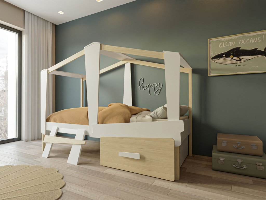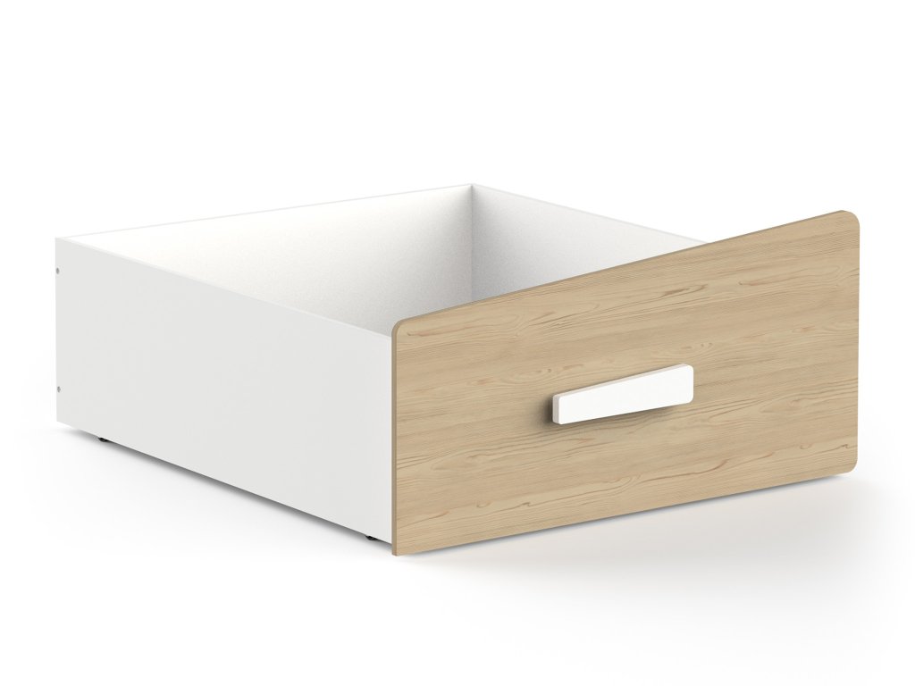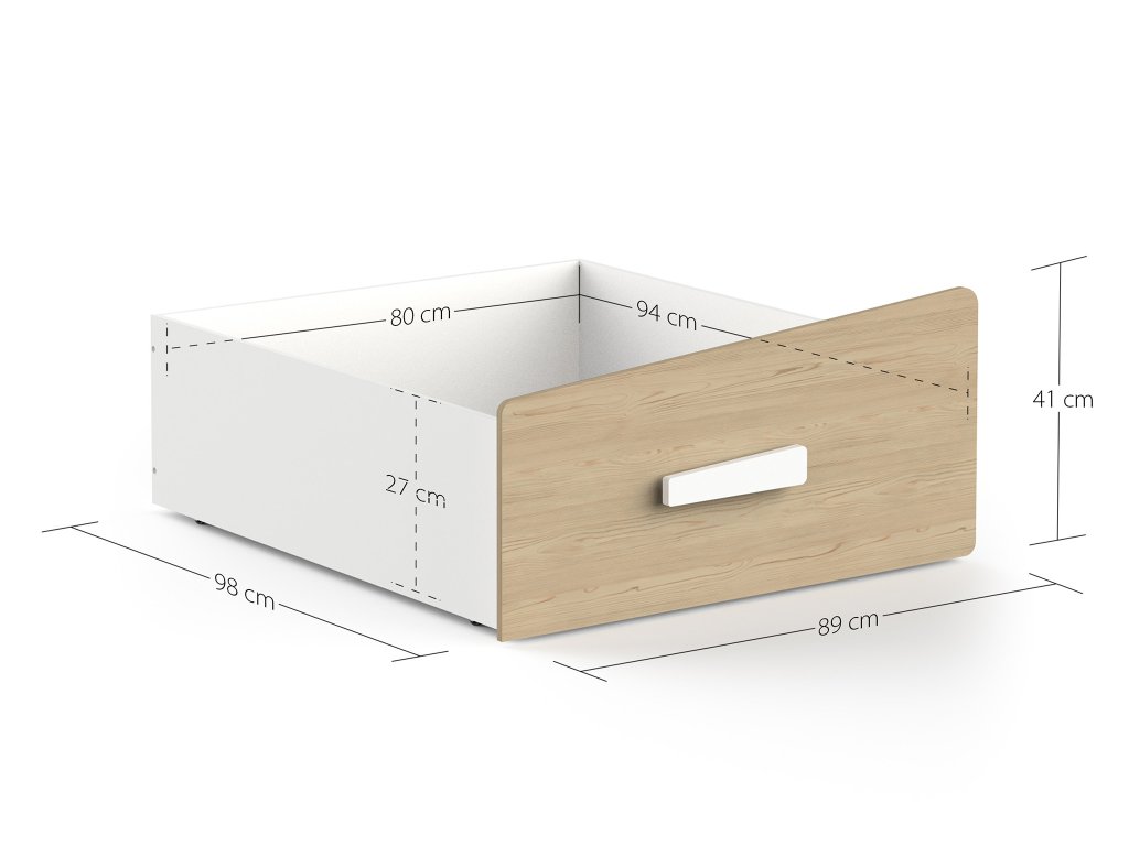Úložný box k posteli Cabane je praktickým riešením na udržanie poriadku a organizácie v detskej izbe. Je navrhnutý tak, aby presne zapadol pod posteľ a poskytol dostatok priestoru na odkladanie posteľnej bielizne, hračiek, prikrývok či sezónneho oblečenia. Vyrobený je z masívneho borovicového dreva v kombinácii s kvalitnou MDF doskou a ošetrený netoxickou riediteľnou farbou. Elegantné biele prevedenie dokonale ladí s dizajnom postele Cabane. Box je vybavený praktickou rúčkou a kolieskami, ktoré umožňujú jeho ľahké, tiché a šetrné vysunutie bez poškodenia podlahy.