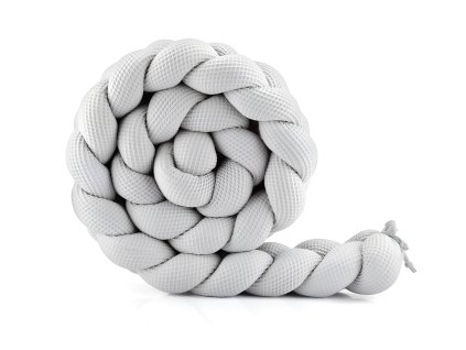 Béžový vrkoč do postieľky 210 cm plní rovnakú funkciu ako ochranný mantinel. Zabraňuje tomu, aby sa detičky nechtiac buchli o drevené priečky v postieľke. Zároveň si ho môžete z postieľky kedykoľvek vybrať a použiť ho na posteli alebo hracej podložke. Pletený vrkoč do detskej postieľky je vysoký 18 cm a široký 10 cm má poťah z bavlny. Výplň vrkoča tvoria silikónové guličky. Oba materiály majú certifikát kvality OEKO-Tex Standard 100, čo znamená, že neobsahujú žiadne škodlivé chemikálie a sú bezpečné pre deti. Vrkoč na postieľku priviažete pomocou šnúrok, ktoré sú naň všité.