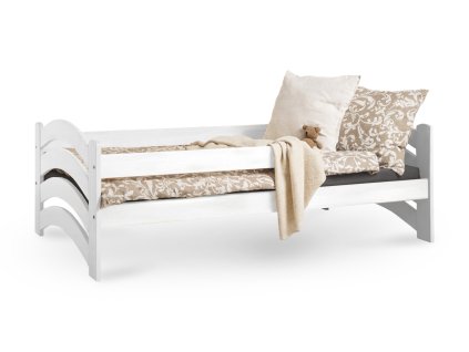 Borovicová detská posteľ so zábranou 180x 80 Wiki v jemnom bielom prevedení
